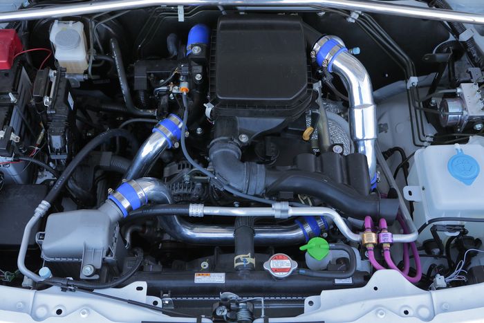 純正の樹脂ジャバラタイプからアルミパイピングに変更することによりエアーの流れをスムーズにし、