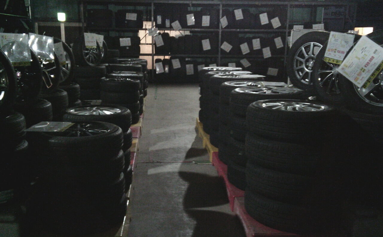 倉庫内もちゃんと整理整頓してノーマルタイヤホイール出していきます。